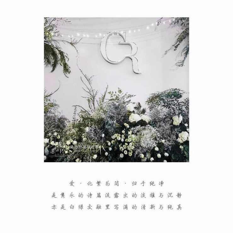 化繁为简的白绿色系,是清新婚礼风格最好的诠释。含蓄的白绿,婉约又雅致。