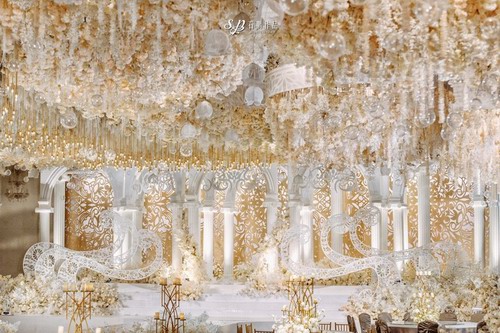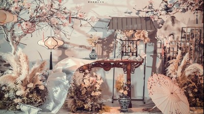 取鎏金之色打底,凸显高雅华贵之大气;檀木之色勾勒,辅以古朴典雅之韵味;丹青之色点缀,添以书卷笔墨之灵气。最后打上香槟粉色灯光,晕染出一幅复古又时尚,沉稳又新颖,.....