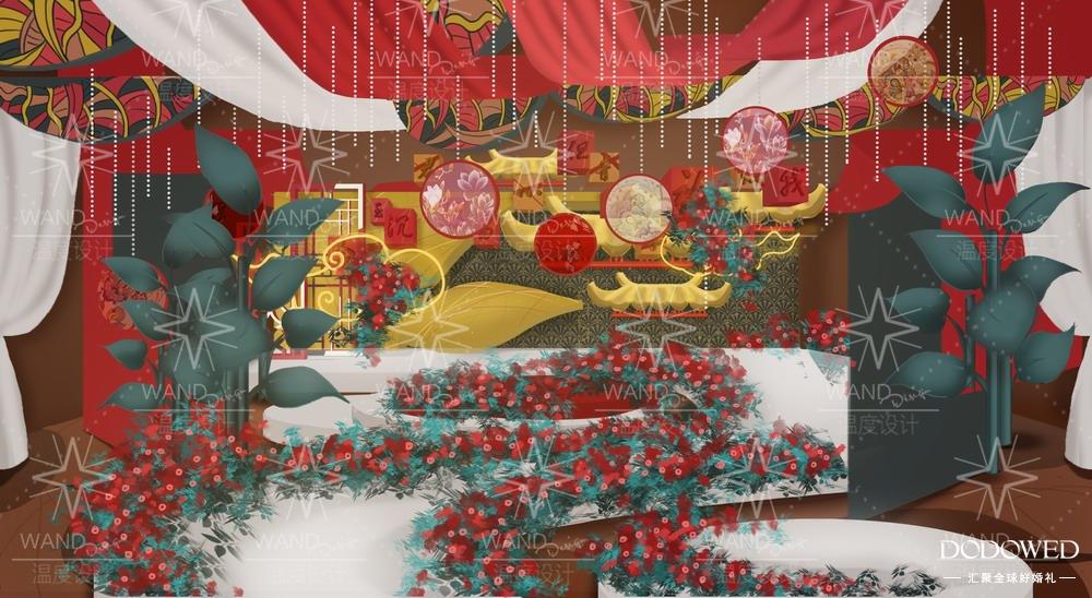 秀场风高级红色婚礼多用曲线踪迹的递进,