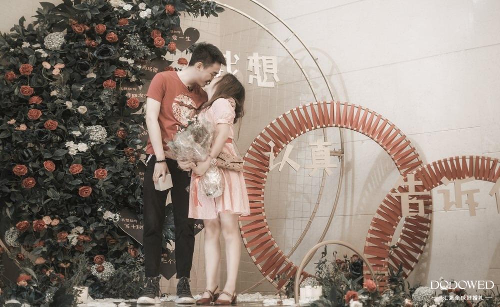 这场以“童话世界里的家”为主题的户外婚礼,用花纹的样式勾勒了门的样式,