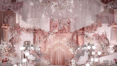 爱情是什么颜色?相信大部分人都会回答“粉色”,爱情就像甜腻的棉花糖,在入口的瞬间,整个世界都被渲染成粉色模样。整个婚礼的布置,目光所及之处皆是漫天飞舞的花开烂漫.....