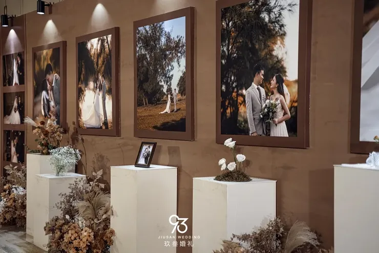 合影区采用多层次的矩形造型,布置总体呈现出时尚大方的风格,