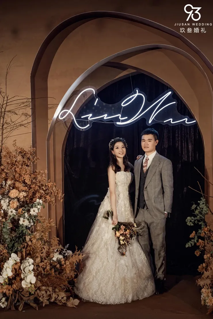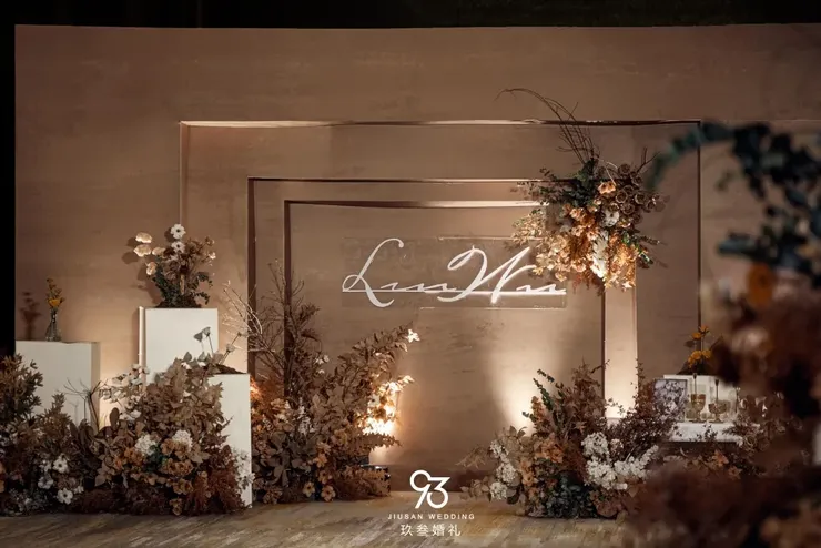 搭配热烈又不失柔和的插花布置中和,让现场有一种非常收敛的热情感 收放自如恰到好处。