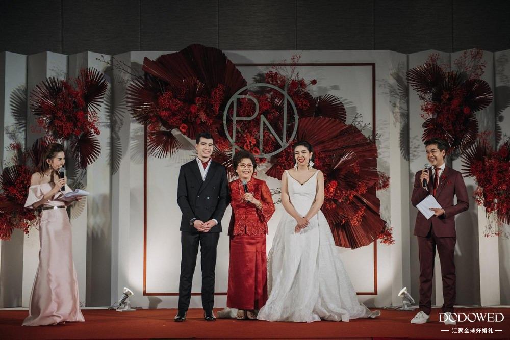 勃艮第红+闪耀鎏金泰式婚礼