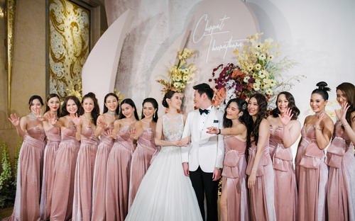 这场奶咖色为主调的婚礼,温柔又高级,背景上柔软的纱幔层层叠叠,星星灯点缀其间,每一处褶皱仿佛都在诉说浪漫,简直绝绝子!