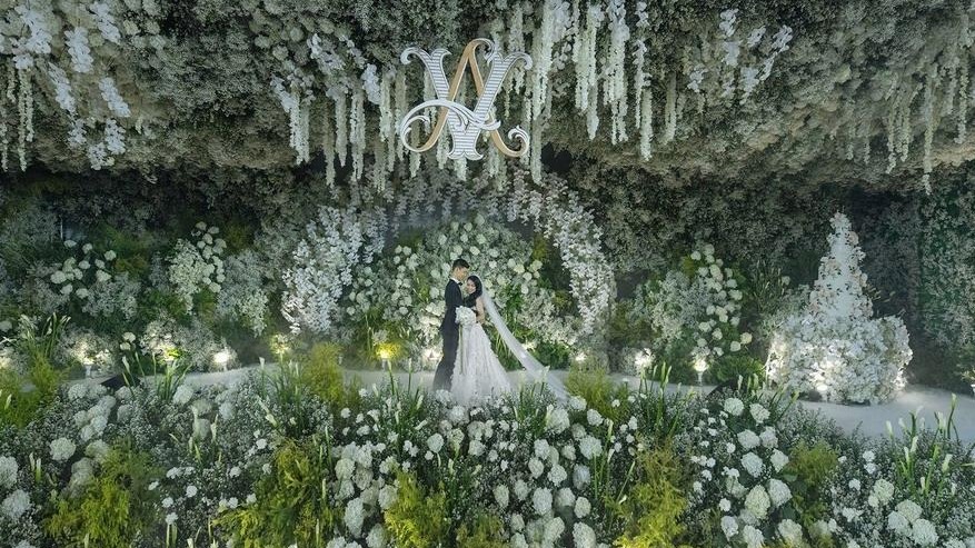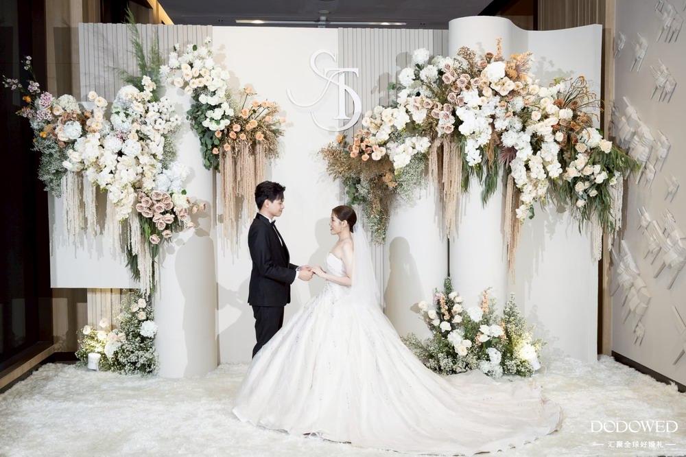 这场婚礼以极简高级的香槟白配色为主调,打造出兼具仪式感与艺术感的空间。