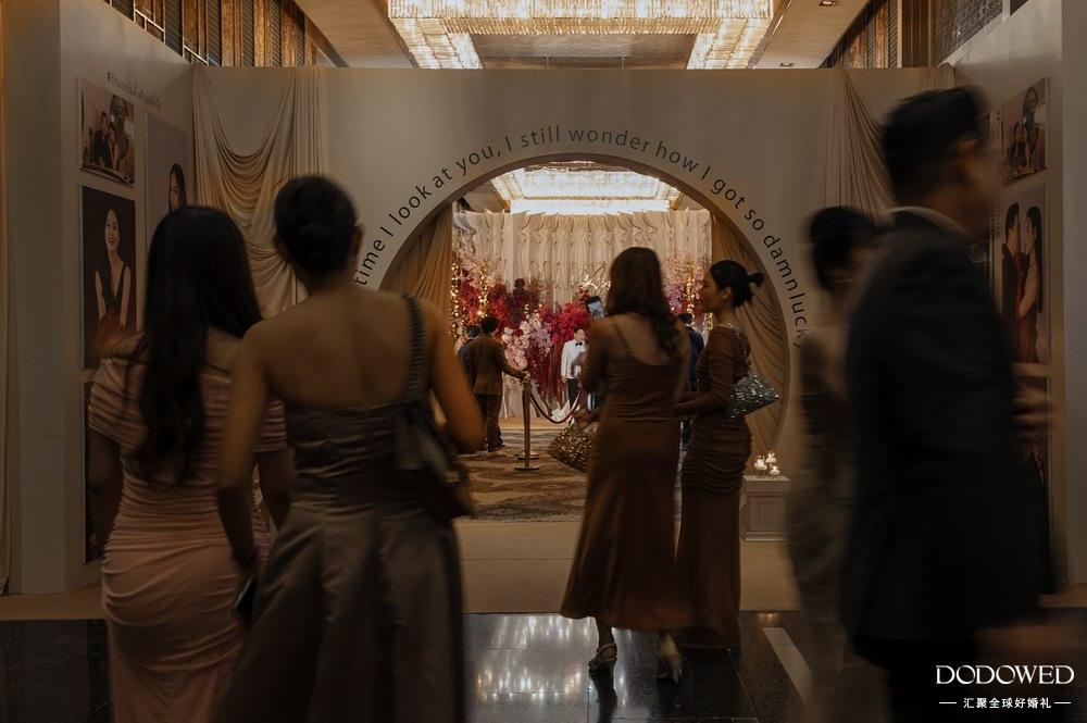 这场婚礼以「幸运挚爱,鎏金誓约」为核心设计理念,将新人“遇见彼此是极致幸运”的爱情故事,融入轻奢复古的空间打造中。设计师以米白、勃艮第红与鎏金为主色调,米白诠释爱情的纯粹,勃艮第红诉说情感的热烈,鎏金则为这份爱意镀上永恒的仪式感,让整个婚礼成为“幸运与爱”的具象表达。