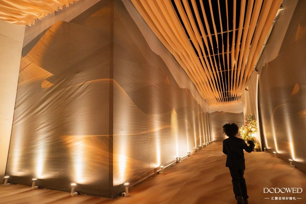 这场以「沙漠玫瑰的绽放」为核心的婚礼,是一场从荒芜到新生的空间蜕变与爱情隐喻的完美融合,设计师以沙漠玫瑰的形成轨迹为灵感,将废弃停车场化作沉浸式的沙漠山谷,让爱情的坚韧与优雅在这片“人造自然”中绽放。