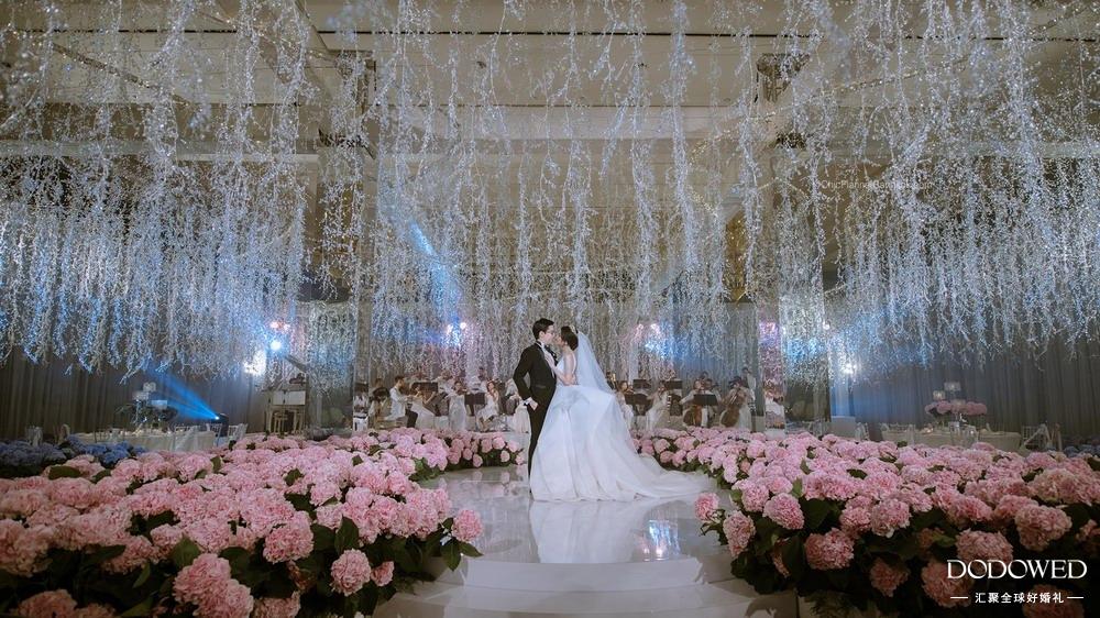 粉色调悬浮式花艺婚礼