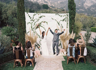 一般来讲,竹条编织的设计很容易落得繁复,但是这一场婚礼依旧保持了泰式极简的清丽感,结构上的编织工艺让装饰层次满满,而且金色、白色、原色的搭配更是别有洞天,也说明了传统手工艺在现代婚礼上的价值。